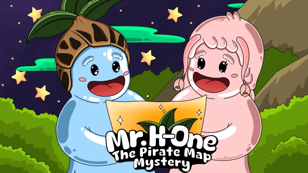 Mr. H-One and Ms. Lastly journey across the galaxy with a pirate map, facing quirky ships, floating islands, and pirate robots as they search for the secret of the golden compass.